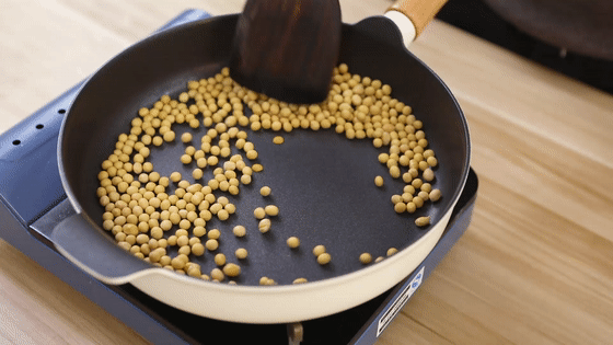 2.開(kāi)小火炒20分鐘左右至豆香四溢。將炒好的黃豆倒入碗中自然冷卻。(炒過(guò)的黃豆出鍋時(shí),小心燙手。)