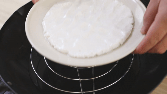 12.蒸好的糯米面要用保鮮膜蒙住盤(pán)子,防止表面變干,晾至溫?zé)帷?br />