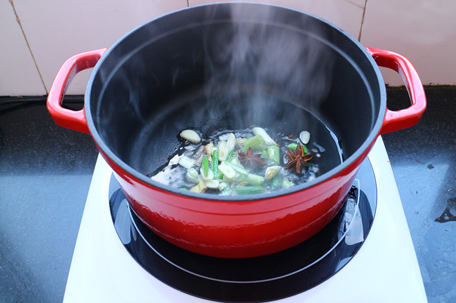 輔料:八角2粒 辣椒2.3個(gè) 蔥姜段少許 醬油少許 料酒少許 鹽少許