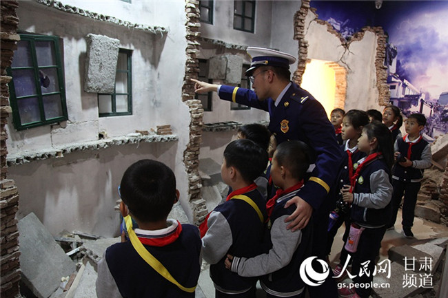 學生們學習地震逃生知識。(甘肅省森林消防總隊政治部供圖)