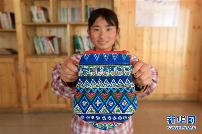 5月15日,在畢節(jié)市特殊教育學(xué)校,一名學(xué)生在展示自己制作的手工藝品。 新華社發(fā)(王純亮 攝)