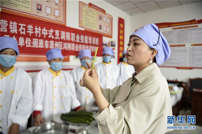 培訓老師在中式烹調師職業(yè)技能培訓班上為寧夏固原市原州區(qū)頭營鎮(zhèn)石羊村婦女講解食材選用規(guī)范(5月14日攝)。 新華社發(fā)(馮開華 攝)