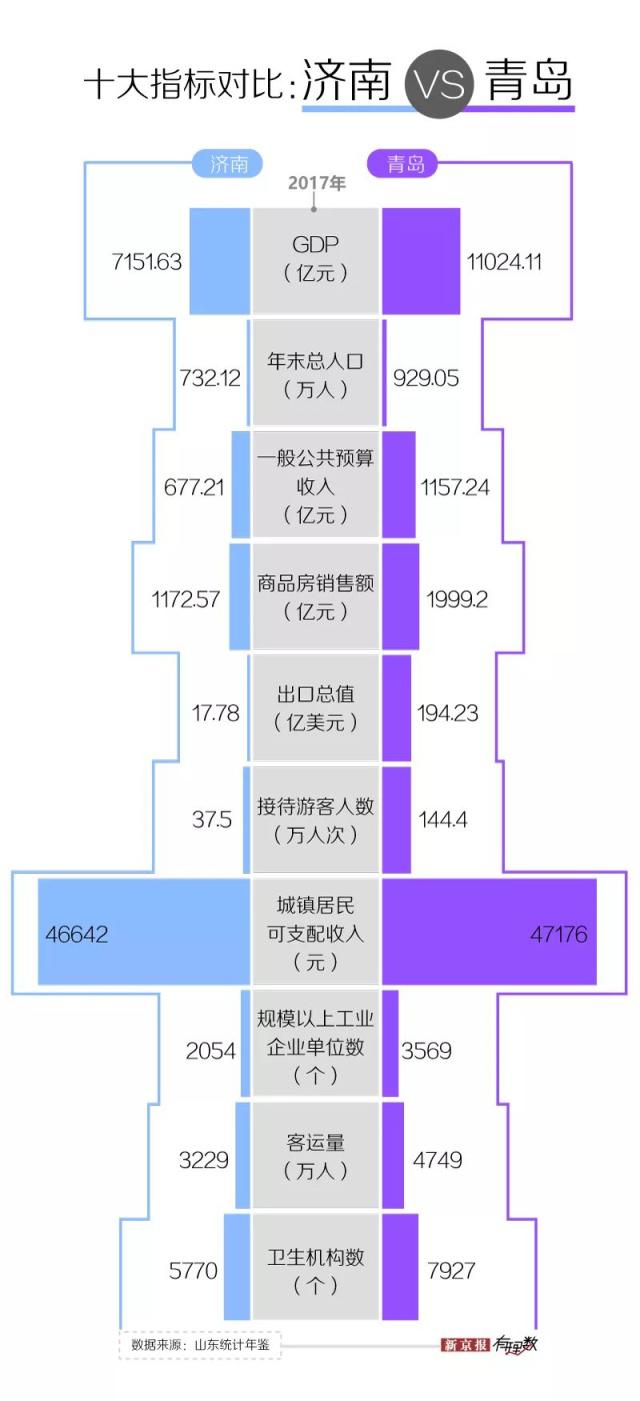 在全國范圍內(nèi)有 15 個(gè)副省級(jí)城市,濟(jì)南是其中 10 個(gè)省會(huì)城市之一,而青島是其中 5 個(gè)計(jì)劃單列市之一。所以,在區(qū)域的引領(lǐng)和帶頭作用上,山東省的這兩個(gè)城市是被國家寄予同樣厚望的。
