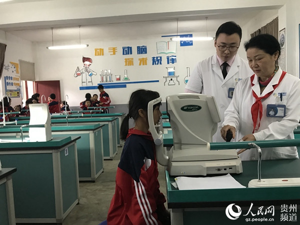 醫(yī)生免費為平壩區(qū)齊伯小學(xué)的學(xué)生進行眼疾患篩查
