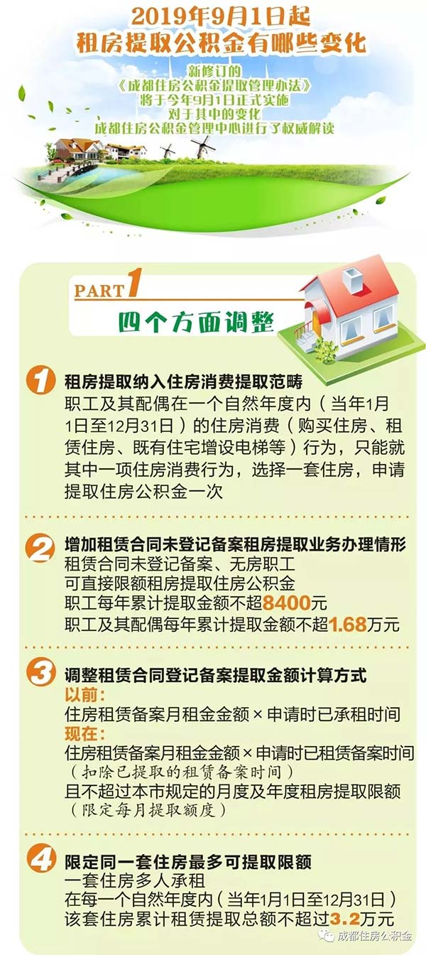 人民網(wǎng)成都6月3日電 (任重)為規(guī)范住房公積金提取管理,貫徹落實(shí)加快建立租購(gòu)并舉住房制度,加大對(duì)市民租賃自住住房支出的政策支持力度,新修訂的《成都住房公積金提取管理辦法》對(duì)租房提取進(jìn)行了優(yōu)化,將于今年9月1日正式實(shí)施。