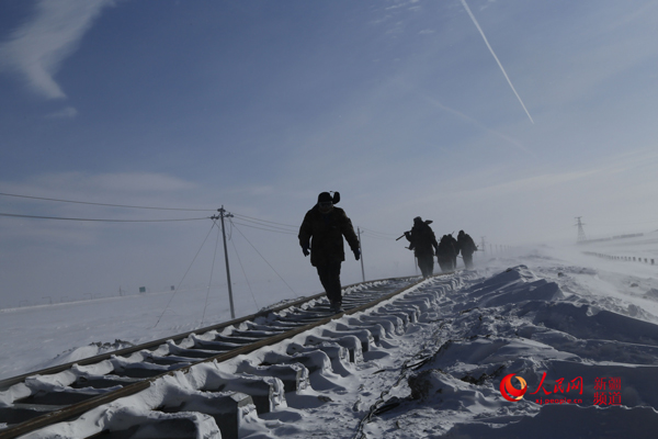 “我們是2018年11月進(jìn)入風(fēng)區(qū)作業(yè)的,這也是我第一次在暴風(fēng)雪中施工。在風(fēng)區(qū),六七級(jí)風(fēng)是家常便飯,風(fēng)雪打得臉生疼不說(shuō),新鋪的鋼軌經(jīng)常被移雪掩埋,鋪軌列車動(dòng)彈不得,只能人工清雪,清理一步走一步,被埋沒(méi)的鐵軌剛清完轉(zhuǎn)眼又被雪埋了。”葉輝說(shuō),“今年1月底的一個(gè)暴風(fēng)雪天,接送上下班的列車?yán)г诹税肼罚穼?shí)施了交通管制,施工隊(duì)被困工地。大家互相鼓勁,在風(fēng)雪中艱難跋涉8公里多,才到達(dá)營(yíng)救車??康奈恢?。春節(jié)誰(shuí)也沒(méi)有回家,都堅(jiān)守在工地上,就為再多挺進(jìn)一米。”