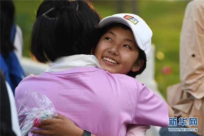 6月9日,合肥市第三十五中學西藏班的初三畢業(yè)生(左)在離別前與校友擁抱。