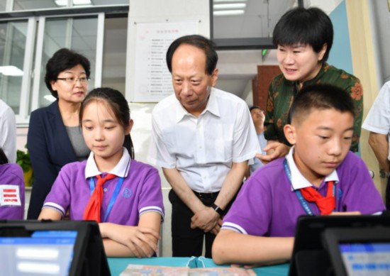 6月10日,石泰峰來到銀川市二十一小學本部,調(diào)研“互聯(lián)網(wǎng)+”創(chuàng)新素養(yǎng)教育開展情況。