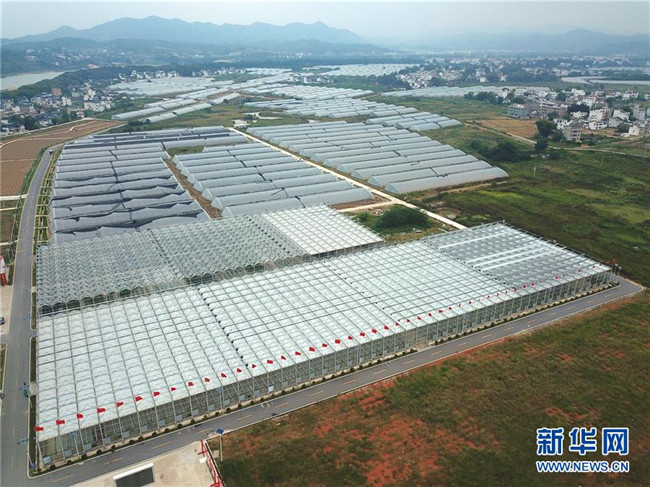 這是江西省于都縣梓山鎮(zhèn)富硒農業(yè)產業(yè)園一景(2018年9月28日無人機拍攝)。新華社記者 胡晨歡 攝