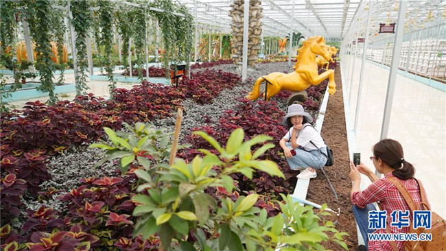 游客在江西省于都縣梓山鎮(zhèn)富硒農業(yè)產業(yè)園內參觀(2018年9月28日攝)。新華社記者 胡晨歡 攝