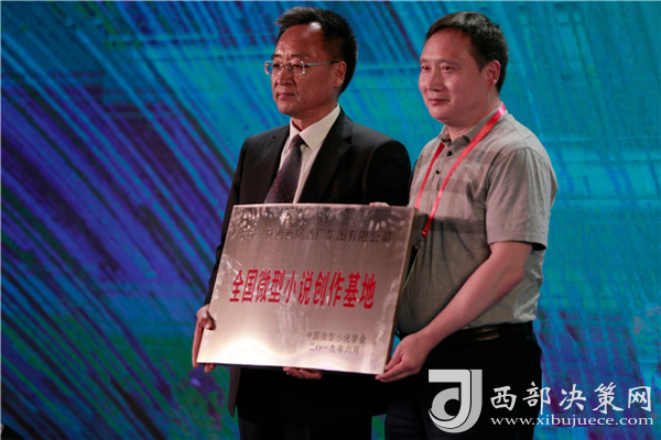 西鳳酒誕生于中華文明和中國農(nóng)耕文明的發(fā)祥地寶雞,有著三千年無斷代傳承的文化基因,更有著中華文明和智慧的浸潤與熏陶,她的一枝一葉、一情一景,都是文學(xué)創(chuàng)作的不竭源泉。中國微型小說學(xué)會會長夏一鳴為陜西西鳳酒廠集團(tuán)有限公司《全國微型小說創(chuàng)作基地》授牌,西鳳酒廠集團(tuán)有限公司黨委副書記、紀(jì)委書記劉周虎接受授牌。