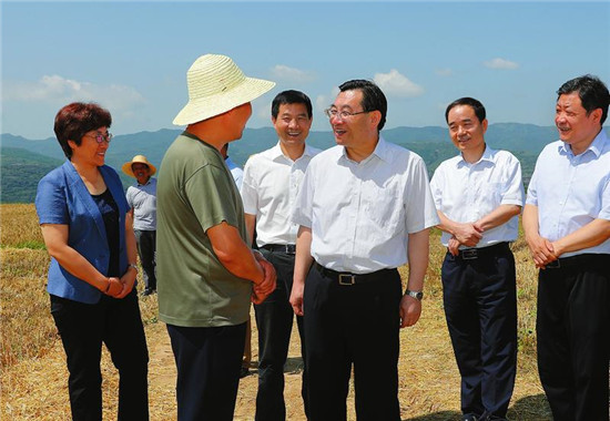 6月13日,省委書記胡和平在千陽(yáng)縣城關(guān)鎮(zhèn)新民村了解夏收和強(qiáng)農(nóng)惠農(nóng)政策落實(shí)情況。 記者 宋紅梅攝