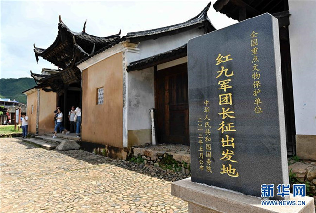 中復(fù)村觀壽公祠前,“紅九軍團(tuán)長(zhǎng)征二萬五千里零公里處”石碑靜立無聲。