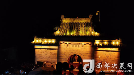 山間燈火通明,全程都有燈光指引。