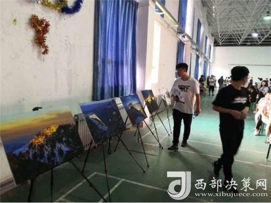 “演繹經(jīng)典”校園活動(dòng)開場(chǎng)前,舞臺(tái)前方的投影大屏循環(huán)播放華山風(fēng)光宣傳片,奇險(xiǎn)峻秀的大美華山風(fēng)光引得現(xiàn)場(chǎng)觀眾贊嘆不絕。舞臺(tái)下方分別通過(guò)華山風(fēng)光攝影展、活動(dòng)展架等形式展示了華山四季的絕美風(fēng)光,吸引眾多師生駐足觀看。