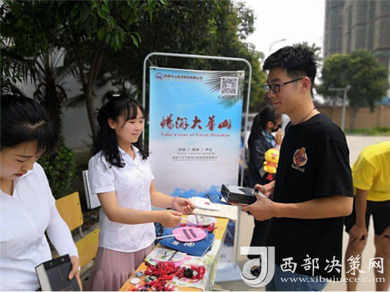 工作人員為參與活動(dòng)學(xué)生送上華山景區(qū)紀(jì)念品