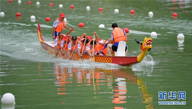 6月30日,龍舟隊(duì)在湖北恩施龍馬風(fēng)情小鎮(zhèn)進(jìn)行比賽。新華社發(fā)(楊順丕 攝)