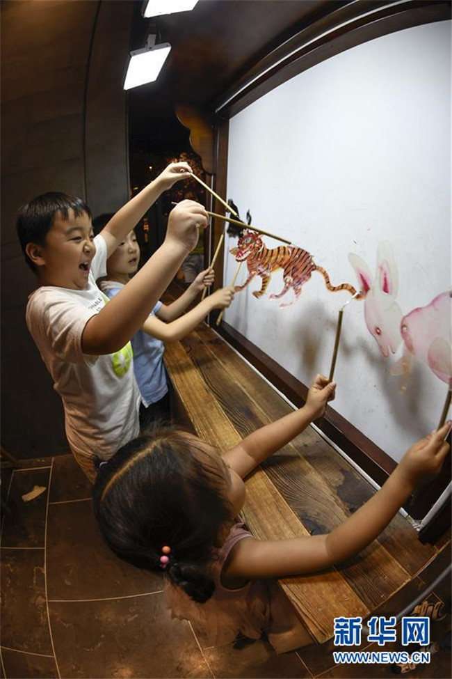 6月30日,小朋友在河北唐山一家博物館體驗(yàn)灤州皮影。新華社發(fā)(劉滿倉(cāng) 攝)