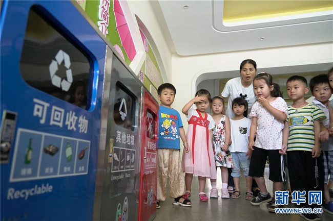 當(dāng)日,浙江省湖州市德清縣乾元鎮(zhèn)第一幼兒園的小朋友在老師和家長的帶領(lǐng)下,通過唱童謠、做游戲等形式,輕松學(xué)習(xí)垃圾分類相關(guān)知識(shí),為維護(hù)環(huán)境衛(wèi)生作出努力。