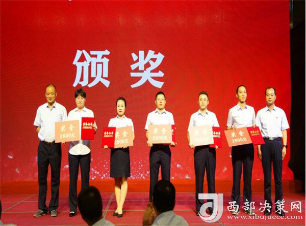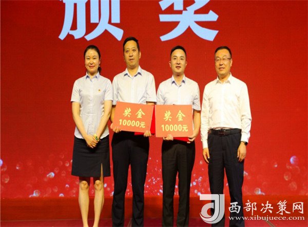西鳳股份公司副董事長、總經(jīng)理賈智勇,西鳳集團(tuán)公司黨委副書記、紀(jì)委書記劉周虎為受表彰的先進(jìn)個(gè)人頒獎(jiǎng)
