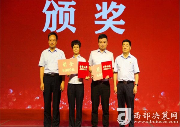 西鳳集團(tuán)公司黨委書記、董事長、西鳳股份公司董事長張正,西鳳股份公司副總經(jīng)理、西鳳營銷管理公司總經(jīng)理周艷花為受表彰的先進(jìn)個(gè)人頒獎(jiǎng)