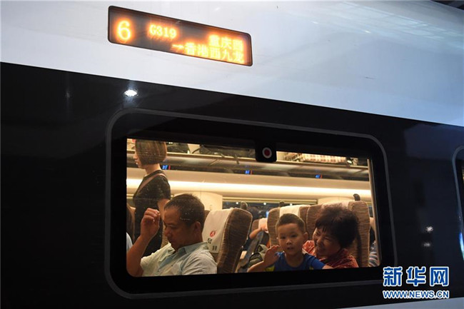 7月11日,一位小朋友在G319次列車上向窗外揮手。當(dāng)日,重慶至香港直達(dá)高鐵正式開通,此次首發(fā)的G319次復(fù)興號列車運(yùn)行速度350km/h,沿途經(jīng)停遵義、貴陽東、桂林西、肇慶東、廣州南和深圳北站。列車由重慶西站至香港西九龍站全程運(yùn)行需7小時37分鐘,全程票二等座票價為660元。目前內(nèi)地與香港聯(lián)通的高鐵車站已增加到58個。新華社記者唐奕攝