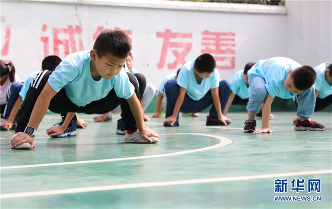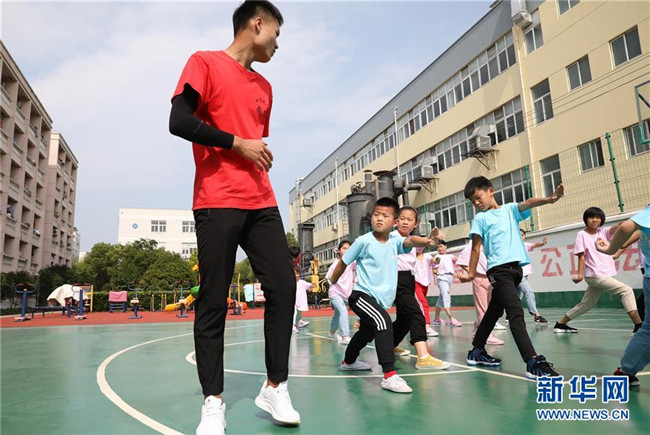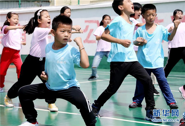 “小候鳥(niǎo)”們?cè)谖湫g(shù)課前做熱身運(yùn)動(dòng)(7月15日攝)。