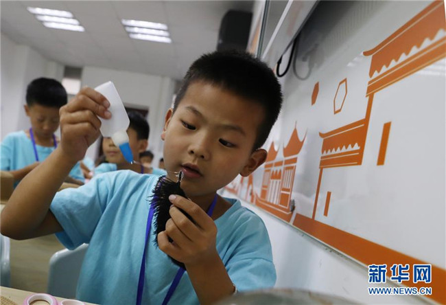 位于上海嘉定區(qū)南翔鎮(zhèn)的南翔工業(yè)開(kāi)發(fā)區(qū),有許多來(lái)自外地的工人。暑假期間,許多小朋友從老家趕來(lái)開(kāi)發(fā)區(qū)跟爸爸媽媽團(tuán)聚。這些“小候鳥(niǎo)”的爸爸媽媽白天要上班,無(wú)暇照顧孩子,上海南翔工業(yè)開(kāi)發(fā)區(qū)實(shí)業(yè)有限公司職工親子工作室從7月初到8月下旬,在工作日為“小候鳥(niǎo)”們安排了豐富多彩的活動(dòng),包括做手工、學(xué)畫(huà)畫(huà)、練武術(shù)等,讓“小候鳥(niǎo)”們度過(guò)一個(gè)文武雙全的暑假生活。 新華社記者 方喆 攝