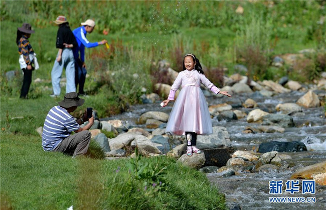 孩子們在達東村景區(qū)溫泉里嬉戲(7月20日攝)。西藏拉薩市柳梧鄉(xiāng)達東村是一個千年古村,也曾是一個貧困村。近年來,依托秀美的自然風光、深厚的歷史文化和淳樸的風土人情,當?shù)卣畬嵤┪幕糜萎a(chǎn)業(yè)精準扶貧,使達東村蛻變成為鄉(xiāng)村旅游勝地。新華社記者張汝鋒攝