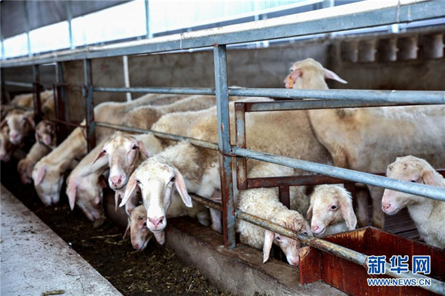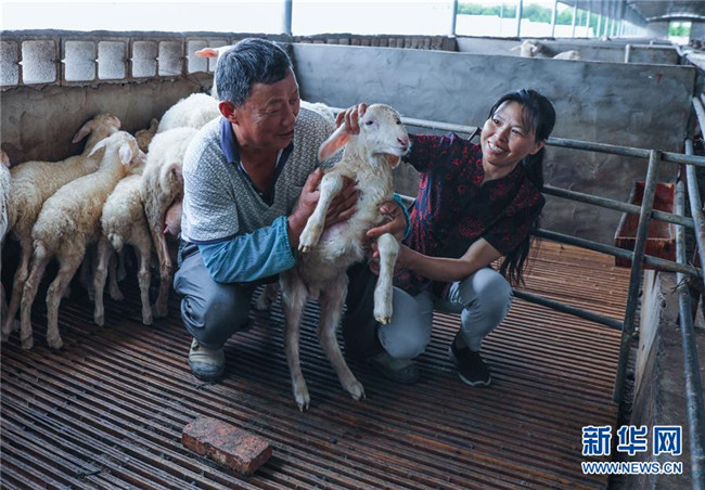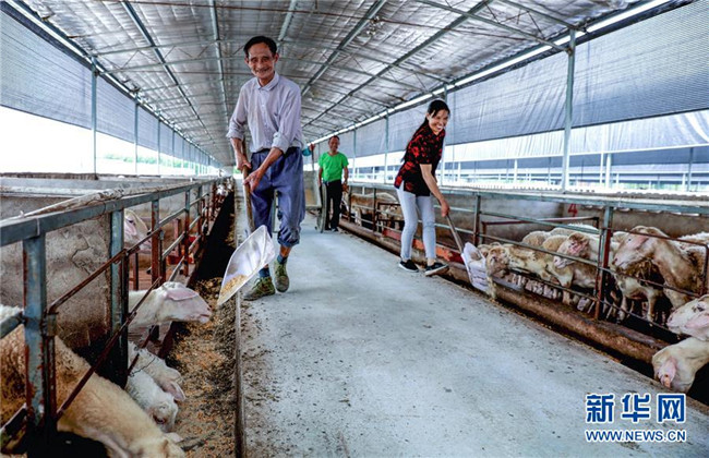 7月21日,在長興德睿生態(tài)農(nóng)業(yè)開發(fā)有限公司,低收入農(nóng)戶在檢查湖羊生長情況。新華社記者 徐昱 攝