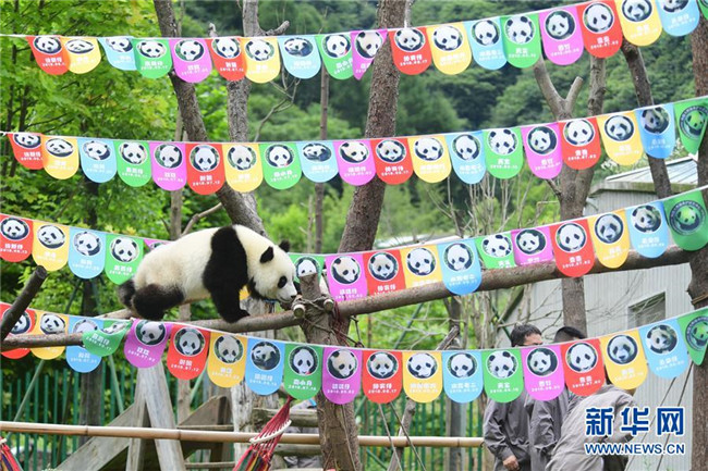 7月25日在中國(guó)大熊貓保護(hù)研究中心神樹(shù)坪基地拍攝的大熊貓。新華社發(fā)