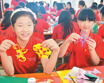 夏令營營員展示自己親手制作的剪紙