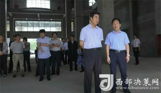 陜西省合陽縣縣委書記李縣平(左)聽取秦晉集團個董事長楊百章介紹秦晉大酒店項目建設情況。
