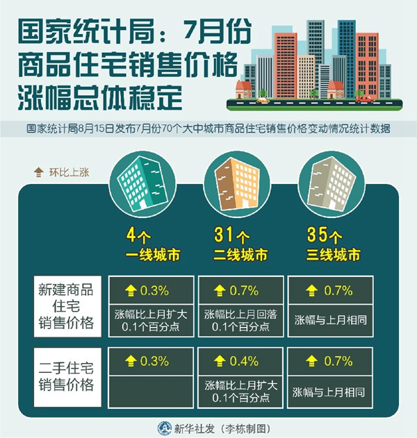 國家統(tǒng)計(jì)局城市司高級統(tǒng)計(jì)師劉建偉分析,7月份,各地繼續(xù)貫徹落實(shí)黨中央、國務(wù)院部署,始終堅(jiān)持“房子是用來住的、不是用來炒的”定位,以穩(wěn)地價(jià)、穩(wěn)房價(jià)、穩(wěn)預(yù)期為目標(biāo),進(jìn)一步落實(shí)房地產(chǎn)調(diào)控長效機(jī)制,房地產(chǎn)市場總體延續(xù)平穩(wěn)態(tài)勢。(記者陳煒偉)