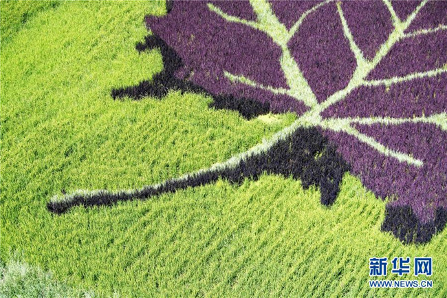 這是8月18日在新疆察布查爾錫伯自治縣納達(dá)齊牛錄鄉(xiāng)稻田畫(huà)基地拍攝的稻田畫(huà)。