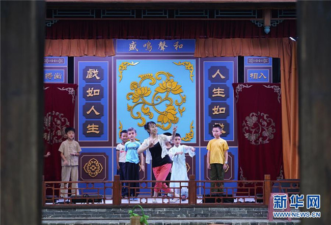 暑假期間,河北省秦皇島市北戴河“裴艷玲藝術傳承基地”——梨園小院開設京劇培訓班,免費教授孩子們京劇表演藝術,同時借助基地平臺為中外游客演出,鍛煉孩子們的表演技能,傳承戲曲藝術。 新華社記者 邢廣利 攝