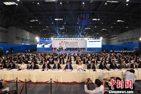 圖為2019中國(guó)國(guó)際智能產(chǎn)業(yè)博覽會(huì)開(kāi)幕式現(xiàn)場(chǎng)。陳超攝