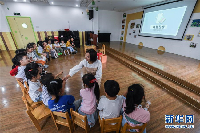 當(dāng)日,浙江省湖州市織里鎮(zhèn)晟舍幼兒園的小朋友們迎來了開學(xué)第一課——垃圾分類課。幼兒園通過請小朋友觀看幻燈片、動(dòng)畫短片以及進(jìn)行趣味游戲等方式,讓孩子們在開學(xué)之初了解垃圾分類知識和垃圾分類的重要性。據(jù)了解,織里鎮(zhèn)所有幼兒園和中小學(xué)目前都已經(jīng)將垃圾分類常識課放入到學(xué)校日常課程中。 新華社記者 徐昱 攝