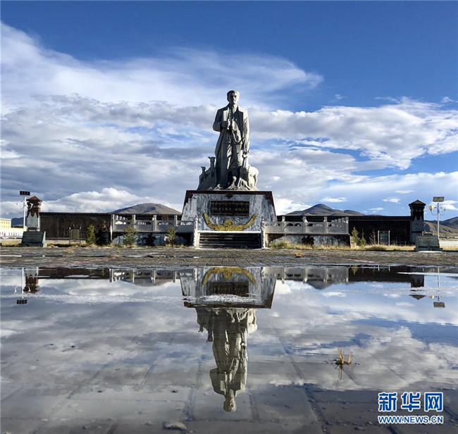 這是在青海省玉樹藏族自治州治多縣用手機拍攝的“環(huán)保衛(wèi)士”杰桑·索南達(dá)杰的雕像(9月12日攝)。新華社記者鄒樂攝