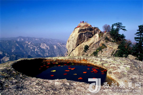 西峰海拔2082.6米,因峰巔有巨石形狀好似蓮花瓣,古代文人多稱其為蓮花峰、芙蓉峰。徐霞客《游太華山日記》中記述:“峰上石聳記,有石片覆蓋其上,如荷花。”當指此石。西北絕崖萬丈,似刀削鋸截,其陡峭巍峨、陽剛挺拔之勢是華山山形之代表,因此古人常把華山叫蓮花山。