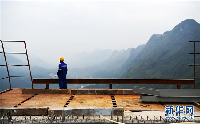 9月26日,一名建設(shè)者在平塘特大橋上眺望。