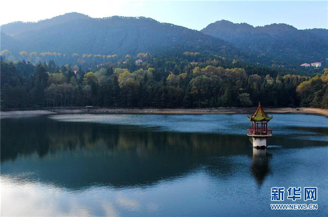 這是10月9日在廬山風景區(qū)拍攝的如琴湖(無人機拍攝)。新華社記者 胡晨歡 攝