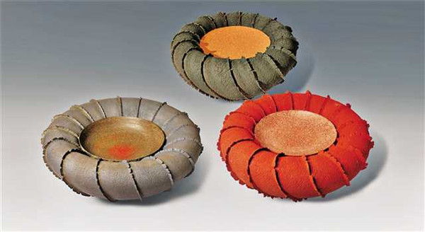 《器之欲》由3個獨立的圓形器皿構(gòu)成,器皿顏色分別為灰藍色、黑色和朱紅色,傳達出質(zhì)樸而敦厚的美感。