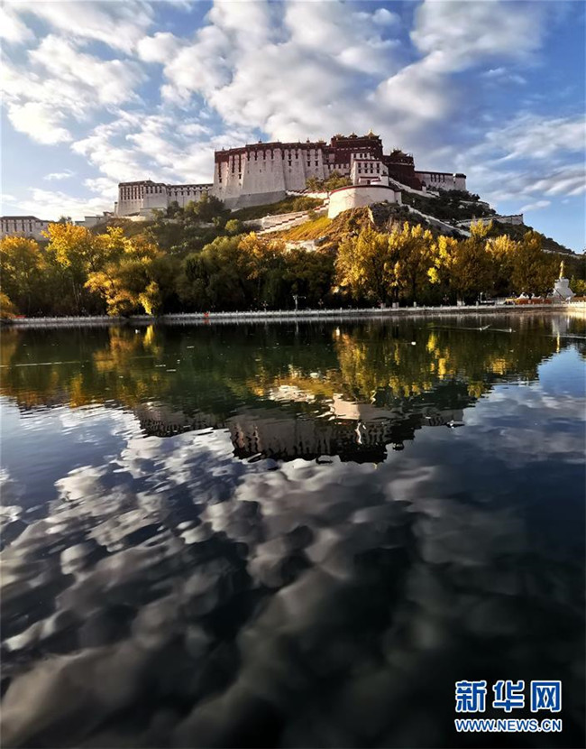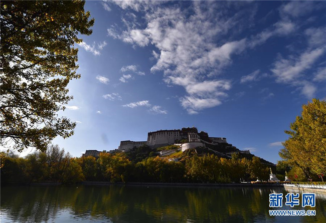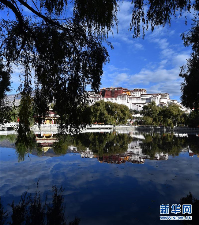 10月16日拍攝的布達拉宮。 金秋時節(jié),拉薩布達拉宮在藍天白云和綠樹碧水的映襯下格外美麗,讓人流連忘返。 新華社記者 覺果 攝