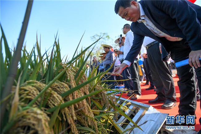 這是第三代雜交水稻新組合試驗示范衡南基地測產(chǎn)現(xiàn)場待收割的水稻(10月21日攝)。 新華社記者 陳澤國 攝