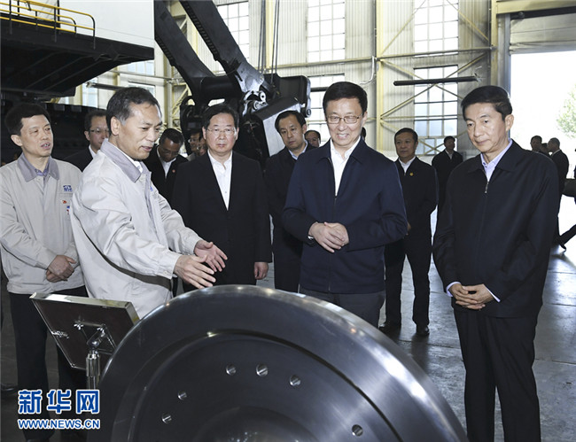 太原重型機(jī)械集團(tuán)有限責(zé)任公司是新中國自行設(shè)計(jì)建設(shè)的第一座重型機(jī)械廠。韓正來到這里,考察礦山挖掘機(jī)、高鐵輪對(duì)等先進(jìn)機(jī)械研發(fā)生產(chǎn)情況。韓正強(qiáng)調(diào),重型機(jī)械是國之重器,是先進(jìn)制造業(yè)的重要支撐,要加快產(chǎn)品智能化步伐,提高生產(chǎn)線和生產(chǎn)設(shè)備的國產(chǎn)化率,實(shí)現(xiàn)精密零部件加工的技術(shù)突破,積極拓展“一帶一路”沿線國家市場,加強(qiáng)人才隊(duì)伍建設(shè),打造具有國際競爭力的高端裝備制造產(chǎn)業(yè)。韓正走進(jìn)生產(chǎn)車間,勉勵(lì)一線工人抓住轉(zhuǎn)型升級(jí)機(jī)遇,推動(dòng)企業(yè)加快發(fā)展,實(shí)現(xiàn)個(gè)人價(jià)值。