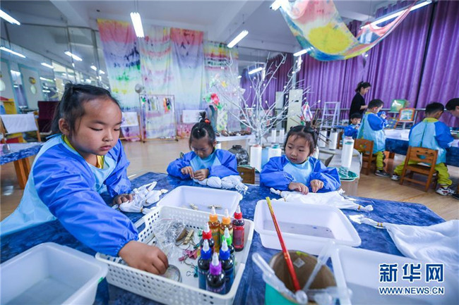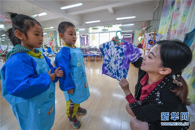 今年以來,浙江省長興縣夾浦鎮(zhèn)中心幼兒園依托當(dāng)?shù)貍鹘y(tǒng)布藝文化基礎(chǔ)開設(shè)“七彩課堂”,引進布藝、扎染等傳統(tǒng)工藝課程,讓孩子們感受民間工藝的魅力。 新華社記者 徐昱 攝