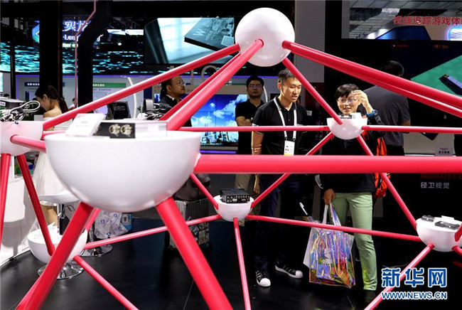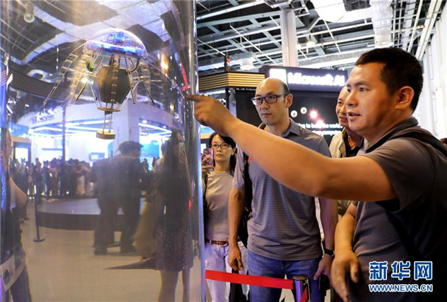 參觀者(右)在上海舉行的2019世界人工智能大會上查看一組用于汽車智能駕駛的電子設(shè)備(8月29日攝)。新華社記者 方喆攝