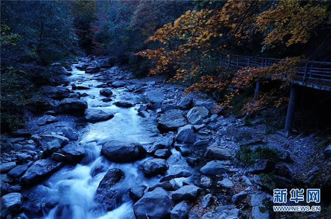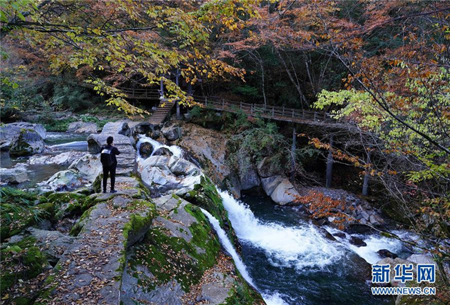 陜西嵐皋縣地處大巴山北麓,境內(nèi)山水相依,美景薈萃。時下,這里層林盡染,秋光瀲滟,云霧繚繞,宛如仙境。 新華社記者 邵瑞 攝