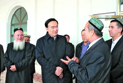 11月8日,自治區(qū)黨委書(shū)記陳全國(guó)在吐魯番市調(diào)研。 這是陳全國(guó)在高昌區(qū)紅星片區(qū)戈壁社區(qū)清真寺了解宗教活動(dòng)開(kāi)展情況。崔志堅(jiān)攝